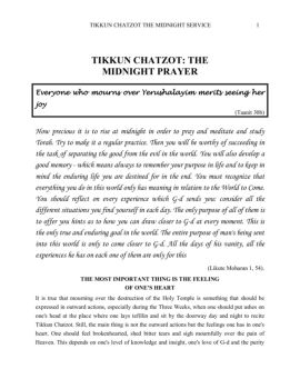 TIKKUN CHATZOT THE MIDNIGHT SERVICE 2 of one's soul It may be true that we today have fallen to a very low level, and no one understands