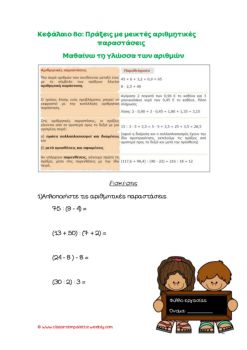 Μαθηματικά Στ' Κεφάλαιο 8ο Πράξεις με μεικτές αριθμητικές παραστάσεις