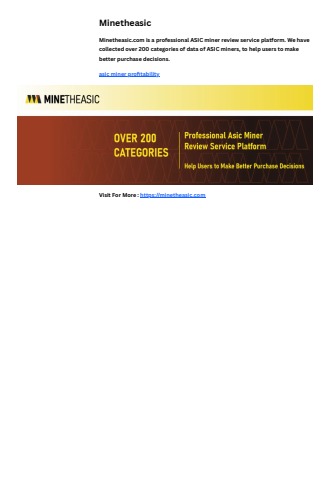 Minetheasic is a professional ASIC miner review service platform. We have collected over 200 categories of data of ASIC miners, to help users to make better purchase decisions.