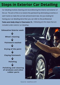 It is the desire of every customer that his or her car looks exactly the same way it looked when it came out of the showroom, but gradually with time the detailing of the car fades off. It is obvious that nothing remains forever so is the car detailing. Car detailing requires a number of steps so that a fine finishing to the car is given and the car looks exactly the way how it was when it was first bought. To experience the best car detailing it is advised to visit Tesla auto body shop in Clearwater FL. The experts will surely meet to your needs and perform the best car detailing with great efficiency in their work. For more information visit https://www.northwestautocollision.com/tesla-auto-body-repair-clearwater-fl/