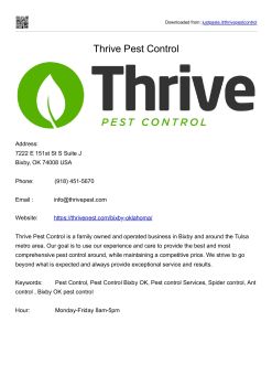 Thrive Pest ControlThrive Pest Control is a family owned and operated business in Bixby and around the Tulsa metro area. Our goal is to use our experience and care to provide the best and most comprehensive pest control around, while maintaining a competitive price. We strive to go beyond what is expected and always provide exceptional service and results.