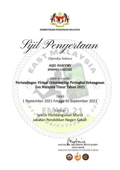 PERTANDINGAN VIRTUAL ORIENTEERING PERINGKAT KEBANGSAAN ZON MALAYSIA TIMUR TAHUN 2021