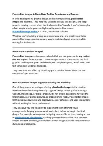 Our Placeholder Image Generator allows you to create high-quality placeholder photos, dummy images, and image placeholders in any size you need.