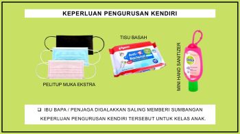 Berikut disenaraikan barang-barang yang perlu dibawa ke sekolah sepanjang sesi orientasi dan transisi tahun 1 2022/2023.