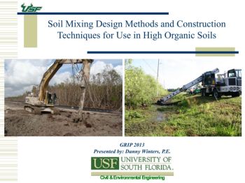 Civil & Environmental Engineering Soil Mixing Design Methods and Construction Techniques for Use in High Organic Soils . GRIP 2013 . Presented by: Danny Winters, P.E.