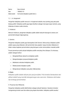 Menurut Anderson, pengertian kebijakan publik adalah sebuah hubungan di antara unit pemerintah dengan lingkungannya. dsb
