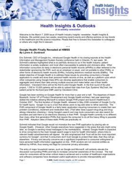 H. e. alth Insights & Outlooks . A bi-weekly newsletter. Welcome to the March 7, 2008 issue of Health Industry Insights’ newsletter, Health Insights &