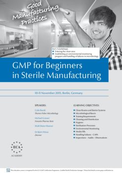 Objectives The course is designed for people working in sterile manufacturing to get basic knowledge of GMP. You get to know the most important pharmaceutical