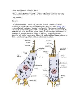 Coclia Anatomy and physiology of hearing 7. Give us an in-depth review on the function of the inner and outer hair cells. From Cummings Hair Cells