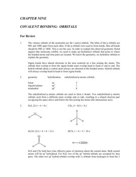 CHAPTER NINE COVALENT BONDING: ORBITALS