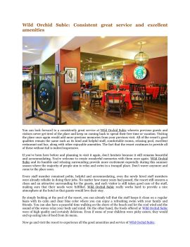 Wild Orchid Subic Consistent great service and excellYou can look forward to a consistently great service at Wild Orchid Subic wherein previous guests and visitors never get tired of the place and keep on coming back to spend their free time or vacation. Visiting the place once again would add more precious memories from your previous visit. All of the resort’s good qualities remain the same such as its kind and helpful staff, comfortable rooms, relaxing pool, excellent restaurant and bar, along with other enjoyable amenities. The fact that the resort continues to provide all of these without fail is indeed impressive. ent amenities