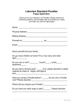 1 | P a g e Lakeview Standard Poodles Puppy Application Thank you for your interest in our Poodles. Please answer the Following questions, this will better help us ...