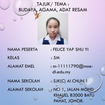 BUDAYA, AGAMA & ADAT RESAM - FELICE YAP SHU YI (5M) - SJKC AI CHUN 1