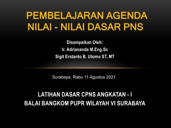 Agenda pembelajaran ini diberikan untuk membekali. Peserta dengan menginternalisasi nilai-nilai dasar yang dibutuhkan dalam menjalankan tugas jabatan PNS secara profesional sebagai pelayan masyarakat yang meliputi kemampuan berakuntabilitas, mengedepankan kepentingan nasional, menjunjung tinggi standar etika publik, berinovasi untuk peningkatan mutu pelaksanaan tugas jabatannya, dan tidak korupsi dan mendorong percepatan pemberantasan korupsi di lingkungan instansinya.