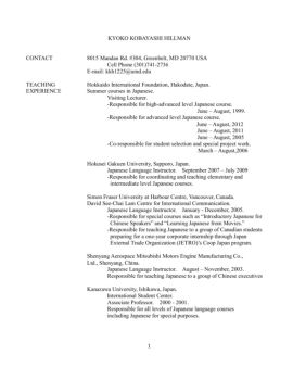 KYOKO KOBAYASHI HILLMAN - UMD School of Languages ...