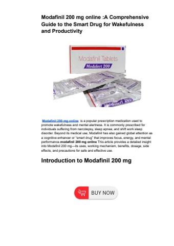 Modafinil 200 mg online :A Comprehensive Guide to the Smart Drug for Wakefulness and Pro