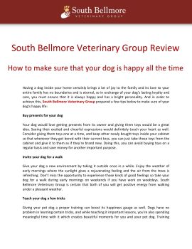 Having a dog inside your home certainly brings a lot of joy to the family and its love to your entire family has no boundaries and is eternal, so in exchange of your dog’s lasting loyalty and care, you must ensure that it is always happy and has a bright personality. And in order to achieve this, South Bellmore Veterinary Group prepared a few tips below to make sure of your dog’s happy life..