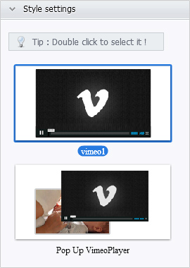 There are 2 types of Vimeo player for you to choose, you can double click on select a player.