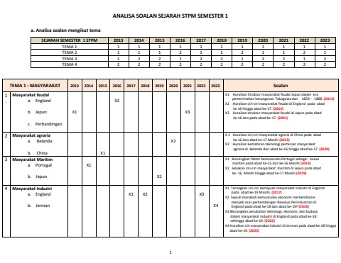 Analisa soalan Sejarah Semester 1 (2013-2023)