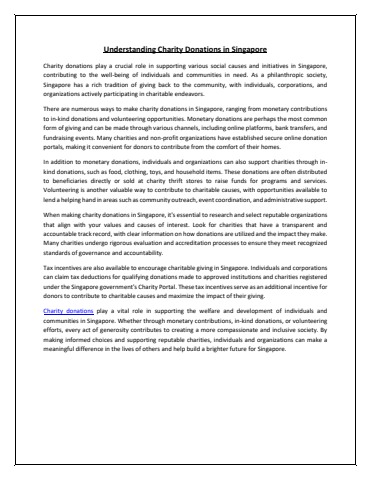 Charity donations play a vital role in supporting the welfare and development of individuals and communities in Singapore. Read more!