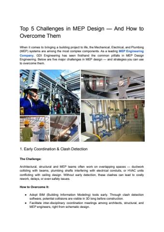 When it comes to bringing a building project to life, the Mechanical, Electrical, and Plumbing (MEP) systems are among the most complex components. As a leading MEP Engineering Company, GDI Engineering has seen firsthand the common pitfalls in MEP Design Engineering. Below are five major challenges in MEP design — and strategies you can use to overcome them.
