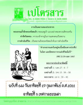 ✝เปโตรสารประจำวันอาทิตย์ที่ 27 กุมภาพันธ์ 2022✝