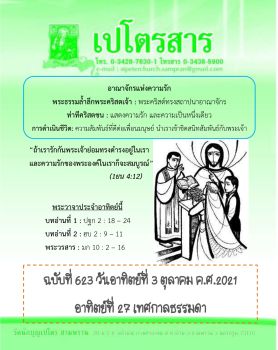 ✝เปโตรสารประจำวันอาทิตย์ที่ 3 ตุลาคม 2021✝
