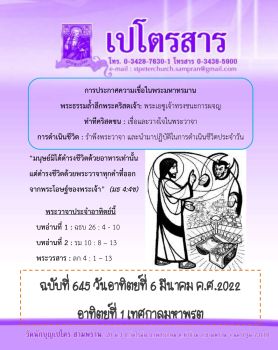 ✝เปโตรสารประจำวันอาทิตย์ที่ 6 มีนาคม 2022✝