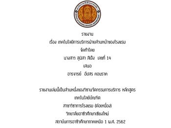 เทคโนโลยีการบริการฝ่ายส่วนหน้าของโรงแรม