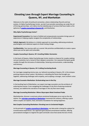 Elevating Love through Expert Marriage Counseling in Queens, NY, and Manhattan