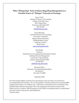 Who’s Whispering? Early Evidence Regarding Management as a Possible Source of “Whisper” Forecasts of Earnings Karen Teitel*