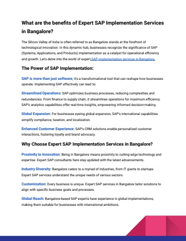 What are the benefits of Expert SAP Implementation Services in Bangalore_