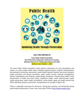 CALL FOR ABSTRACTS . Texas Public Health Association . 91st TPHA Annual Education Conference in Austin, Monday February 23- Wednesday February 25, 2015