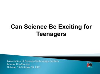 SessionID: YP1103 Session Title: Can Science Be Exciting for Teenagers? Date: Monday, October 17, 2011 Time: 10:45 AM-12:00 PM Location: Convention Center