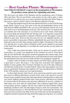 12 13 Best Garden Plants: Meconopsis Tom Pollard is Holehird’s expert on the propagation of Meconopsis. He produces many plants for replanting and sales.