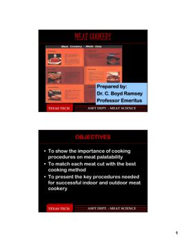 MEAT COOKERY d b TEXAS TECH ASFT DEPT. - MEAT SCIENCE Prepared by: Dr. C. Boyd Ramsey Professor Emeritus OBJECTIVES • To show the importance of cooking