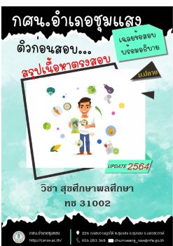 กศน.อำเภอชุมแสง จังหวัดนครสวรรค์ได้จัดทำสรุปเนื้อหาและข้อสอบพร้อมเฉลยในรายวิชา สุขศึกษา พลศึกษา ทช31002