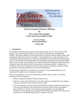 The Environmental Prisoners’ Dilemma Or We’re All in This Together: Can I Trust You to Figure it Out? Eric K. Clemons Heinz Schimmelbusch 20 May 2007