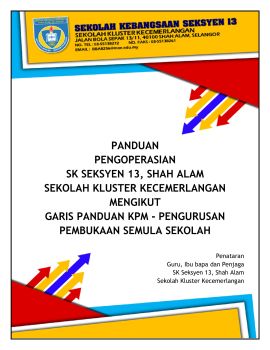 PANDUAN PENGOPERASIAN SK SEKSYEN 13, SHAH ALAM SEKOLAH KLUSTER KECEMERLANGAN MENGIKUT GARIS PANDUAN KPM - PENGURUSAN PEMBUKAAN SEMULA SEKOLAH