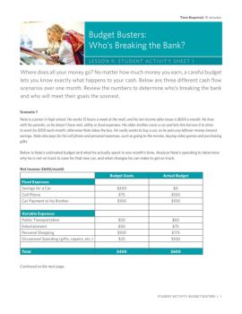 STUDENT ACTIVITy: BUDGET BUSTERS | 3 Budget Busters: Who’s Breaking the Bank? LESSoN 9: STUDENT ACTIVIT y SHEET 1 Scenario 3 Jamal is a senior in high school and ...