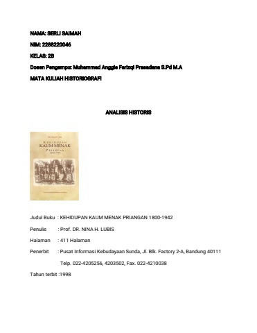 UAS HISTORIOGRAFI Analisis Buku SERLI SAIMAH 2288220046