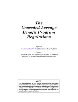 1 UNSEEDED ACREAGE BENEFIT PROGRAM F-8.001 REG 15 The Unseeded Acreage Benefit Program Regulations Repealed by Chapter F-8.001 Reg 42 (effective July 30, 2010).
