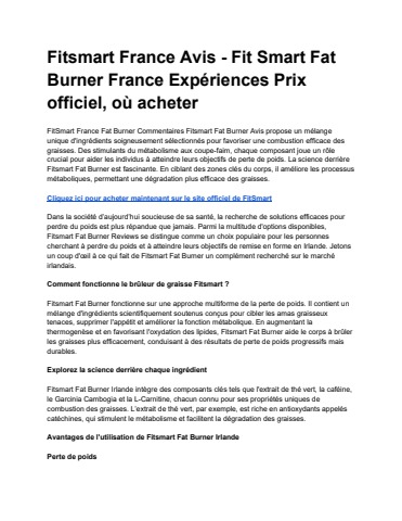 Fitsmart France Avis - Fit Smart Fat Burner France Expériences Prix officiel, où acheter