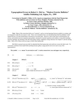 Typographical Errors in Robert L. McCoy, "Modern Exterior Ballistics" Schiffer Publishing Ltd, Atglen, PA, 1999
