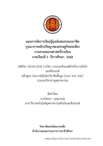 แผนการเรียนรู้ งานประดับยนต์สำหรับงานตัวถังและสีรถยนต์