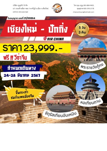 บินตรงเชียงใหม่ - ปักกิ่ง 5วัน3คืน 24-28 มีนาคม 67