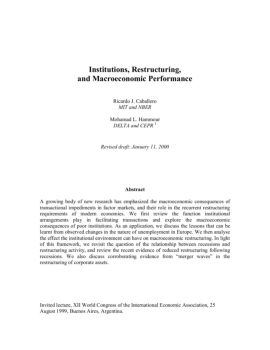 Institutions, Restructuring, and Macroeconomic Performance Ricardo J. Caballero MIT and NBER Mohamad L. Hammour DELTA and CEPR 1 Revised draft: January 11, 2000