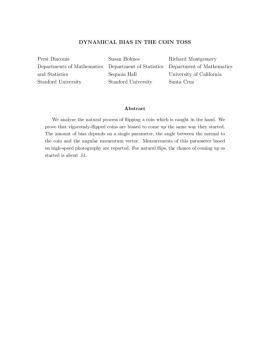 DYNAMICAL BIAS IN THE COIN TOSS Persi Diaconis Susan Holmes Richard Montgomery ... Coin-tossing is a basic example of a random phenomenon. However, naturally tossed