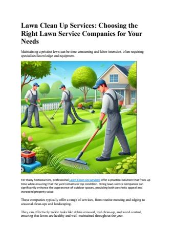 For many homeowners, professional Lawn Clean Up Services offer a practical solution that frees up time while ensuring that the yard remains in top condition. Hiring lawn service companies can significantly enhance the appearance of outdoor spaces, providing both aesthetic appeal and increased property value.