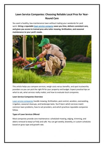 Lawn Service Companies Choosing Reliable Local Pros for Year-Round Care